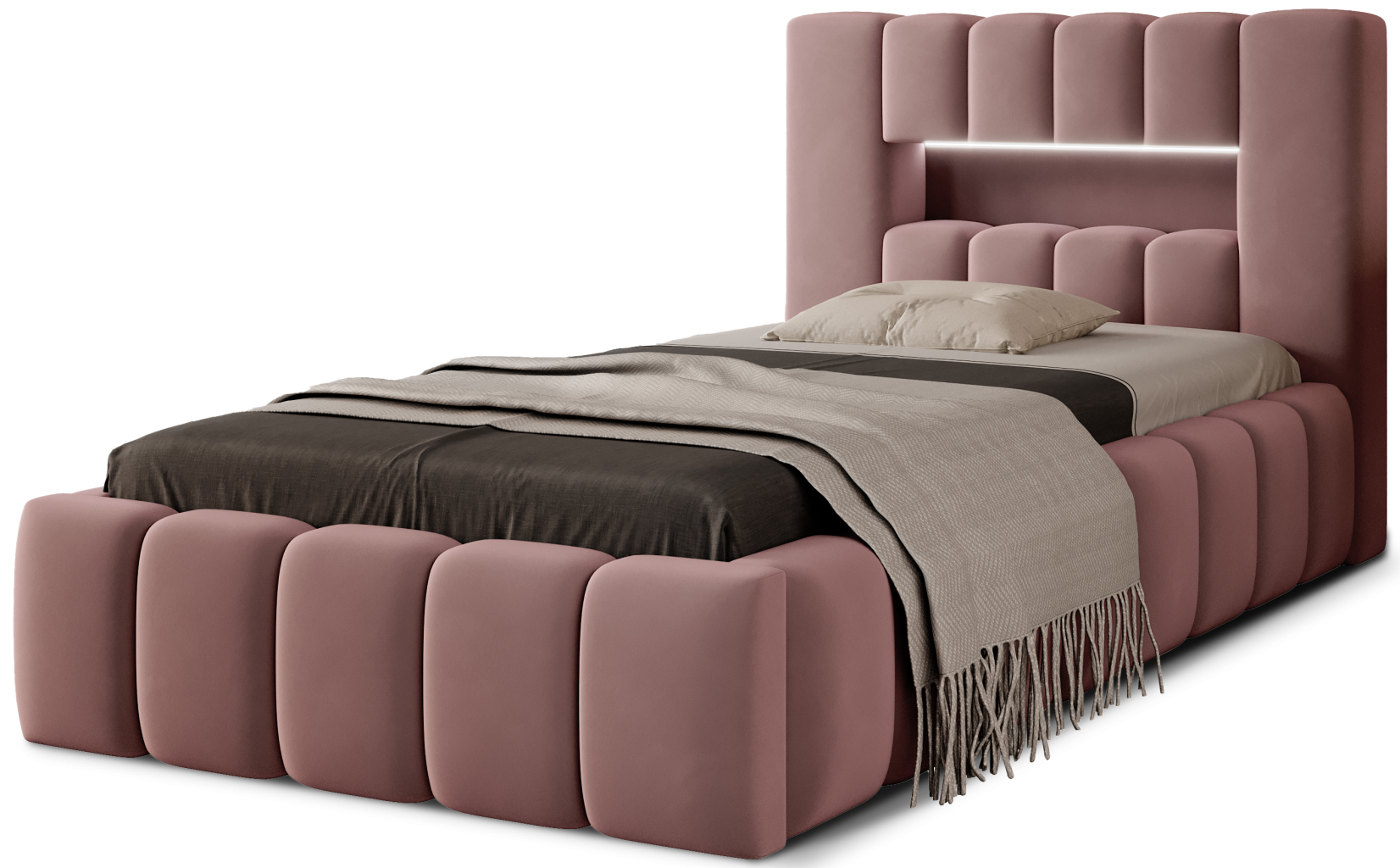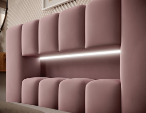 Dotaz na produkt Na splátky ještě dnesLamica je velmi pohodlná, měkká a originální postel v glamour stylu, která zaujme svým neobvyklým tvarem a formou. Tento kus nábytku se skládá z korpusu a dřevěného rámu. Součástí je také přihrádka na ložní prádlo. Rozměry spací plochy 90x200 cm poskytují dostatek prostoru pro nerušený odpočinek. Naše postel vyniká svou kvalitou, protože vysoké čelo a boky postele jsou vyrobeny z dodatečné pěny. Estetický zážitek je umocněn podélným, rozsáhlým prošíváním. Široká škála barevných provedení usnadňuje sladění postele s celým pokojem. Další výhodou je opěrka hlavy s LED osvětlením, díky čemuž je odpočinek ještě příjemnější. Modernita a modernistický vzhled zde jdou ruku v ruce s elegancí, což dělá z Lamicy perfektní volbu v každém případě. Je to kus nábytku, který stojí za to mít. Látky: Nube 24