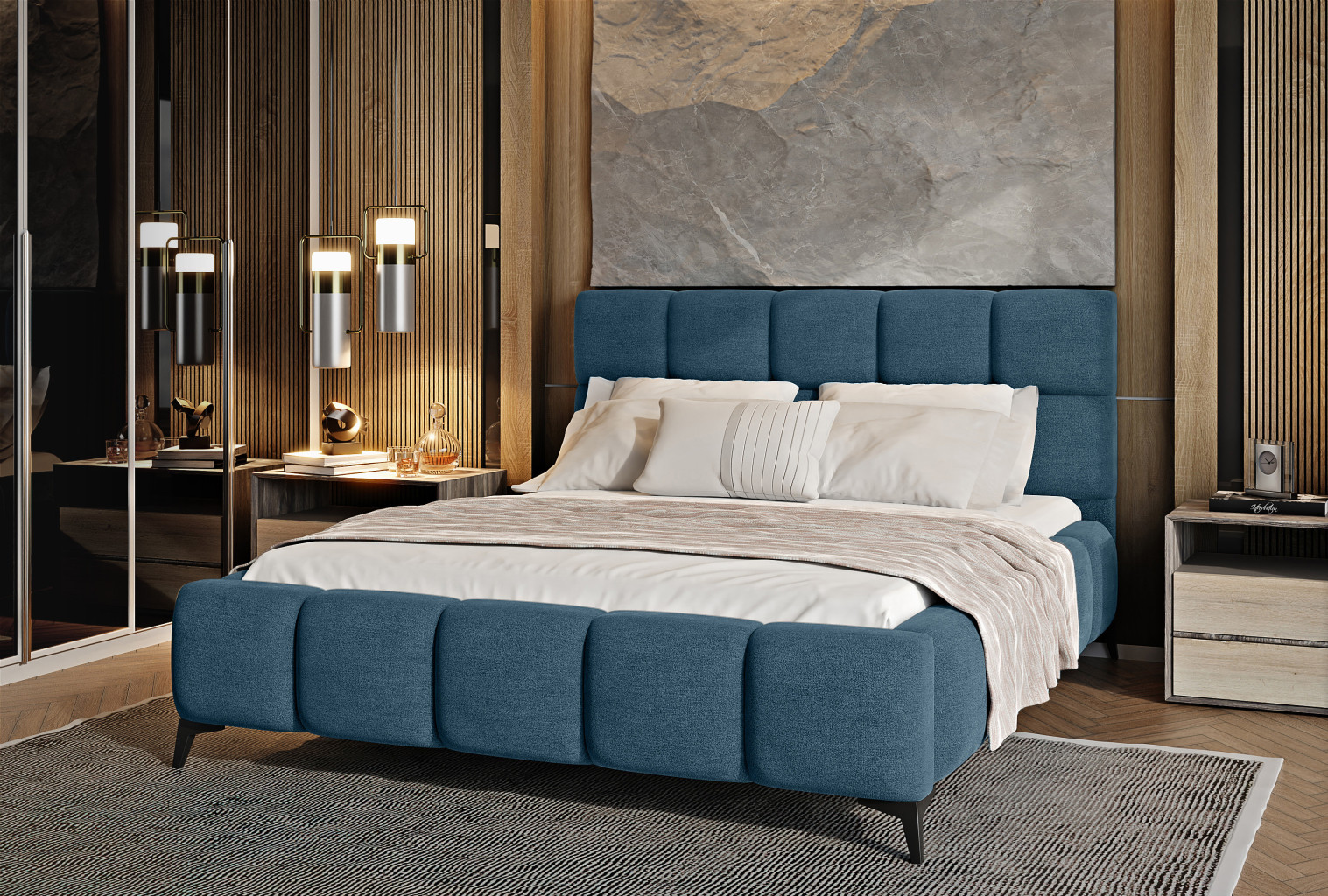 Dotaz na produkt Na splátky ještě dnesPostel Mist je kombinací moderního designu a glamour stylu, která vnáší do každé ložnice nádech elegance. Opěrka hlavy má měkkou pěnovou výplň potaženou vysoce kvalitním čalouněním. Prošívání, které zdobí postel Mist, dodává styl a charakter a přináší nádech modernity. Nábytek je k dispozici ve třech šířkách spací plochy: 140, 160, 180 x 200 centimetrů. To usnadňuje přizpůsobení postele podmínkám v bytě. Černé ocelové nohy o délce až 13,5 centimetru vytvářejí dojem, že se postel vznáší nad zemí, což dále opticky zvětšuje místnost, ve které bude postel Mist umístěna. Nábytek je navíc vybaven také přihrádkou na ložní prádlo, což je velmi dobré řešení pro malé prostory a umožňuje vám udržet ložnici uklizenou. Látky: Gojo 40