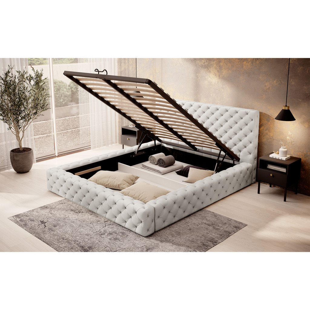 Dotaz na produkt Na splátky ještě dnesPostel Princce je jedinečný kus nábytku, který kombinuje styl, funkčnost a pohodlí. Poskytuje vynikající místo k odpočinku a je ideální volbou do každé ložnice. Postel Princce je vyrobena z odolného kovového rámu a zaručuje nejen pevnost, ale i dlouhou životnost. Výška sedáku je 30 cm a opěradlo dosahuje 87 cm, což poskytuje pohodlí při relaxaci. Postel obsahuje praktický úložný prostor na ložní prádlo, který nabízí pohodlné řešení pro uložení dalších předmětů. Nohy postele jsou vyrobeny z černých lamel, které jí nejen dodávají moderní vzhled, ale také usnadňují pohyb. Sada obsahuje 36 lamel, které poskytují matraci správnou oporu. Je však důležité poznamenat, že matrace není součástí sady, což umožňuje volnost výběru správné matrace podle osobních preferencí. Postel Princce je k dispozici v různých velikostech, což umožňuje její přizpůsobení individuálním potřebám a velikosti ložnice. Postel lze navíc ozdobit ozdobným prošíváním, které jí dodá eleganci a jedinečný charakter. Stručně řečeno, postel Princce je vynikající kombinací stylu, funkčnosti a pohodlí.Látky: Softis 17