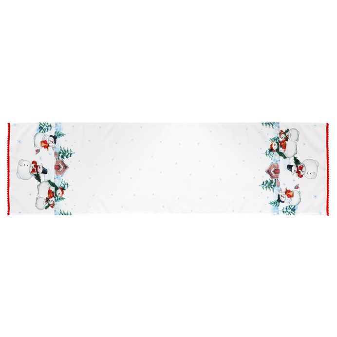 Dotaz na produktTento bílý vánoční běhoun s motivem zimní krajiny se sněhuláky na okrajích je vyroben z kvalitního 100% polyesteru a má rozměry 40 x 150 cm. Jeho design s veselými sněhuláky přinese do vašeho interiéru zimní atmosféru plnou radosti a veselí. Užijte si svátky s touto krásnou dekorací stolu, která přinese do vašeho domova nezapomenutelnou atmosféru vánočních svátků.