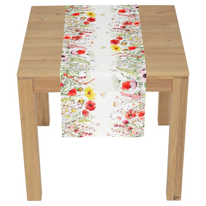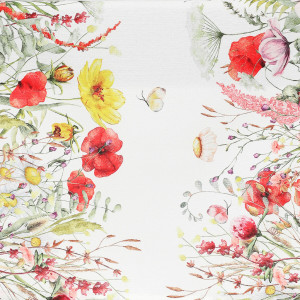Dotaz na produktBěhoun s motivem rozkvetlé jarní louky přináší do interiéru svěží a barevnou atmosféru. Je vyroben z 100% polyesteru, který se snadno udržuje a je odolný vůči běžnému opotřebení. Rozměry 40 x 150 cm umožňují jeho univerzální použití na stoly různých velikostí, kde vynikne jako dekorativní prvek zdůrazňující jarní tématiku. Jemný tisk květin a přírodních odstínů dodává prostoru živost a vizuální efekt. Běhoun je vhodný pro každodenní použití i slavnostní příležitosti.
