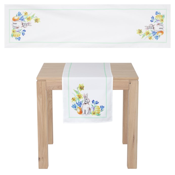 Dotaz na produktTento podlouhlý ubrus na stůl, známý také pod názvem běhoun, je skvělým prostředkem, jak přivítat Velikonoce ve svém domě. Jeho motiv se zajíčkem, vajíčky a květinami vás okamžitě ponoří do pravé jarní atmosféry. Příjemný barevný vzor kontrastuje s bílým pozadím, což dodává stolu nádhernou a velmi elegantní výzdobu. S rozměry 40x150 cm je ideální pro střed stolu a je vyroben z polyesteru, což zaručuje snadnou údržbu a trvanlivost. Tento běhoun se stane skvělým ozdobným doplňkem při velikonočních oslavách, setkáních nebo jen tak pro chvíle pohody a klidu.