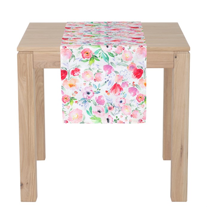 Dotaz na produktTento podlouhlý ubrus na stůl, známý také pod názvem běhoun, je skvělým prostředkem, jak osvěžit vaše prostředí. Jeho motiv s rozkvetlými pivoňkami vás okamžitě ponoří do atmosféry horkých a slunných letních dní. Barevný rostlinný vzor kontrastuje s bílým pozadím a dodává stolu nádhernou letní výzdobu. S rozměry 40x150 cm je ideální pro střed stolu a je vyroben z polyesteru, což zaručuje snadnou údržbu a trvanlivost. Tento běhoun se stane skvělým ozdobným doplňkem při oslavách, letních setkáních nebo jen tak pro chvíle pohody a klidu.