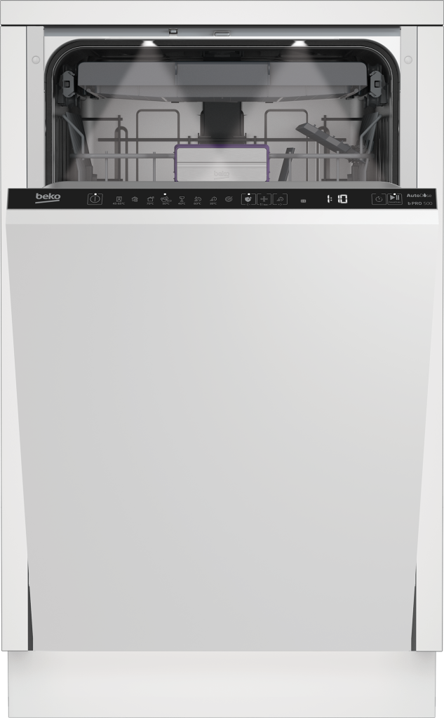 Díky spotřebě vody pouhých 8,9 litrů na cyklus a tichému chodu 45 dBA je ideální volbou pro každou domácnost. LED displej přehledně zobrazuje nastavení a průběh programu. Uvnitř naleznete příborovou zásuvku, třípolohový systém Acrobat pro nastavení výšky horního koše a praktické sklopné držáky talířů.