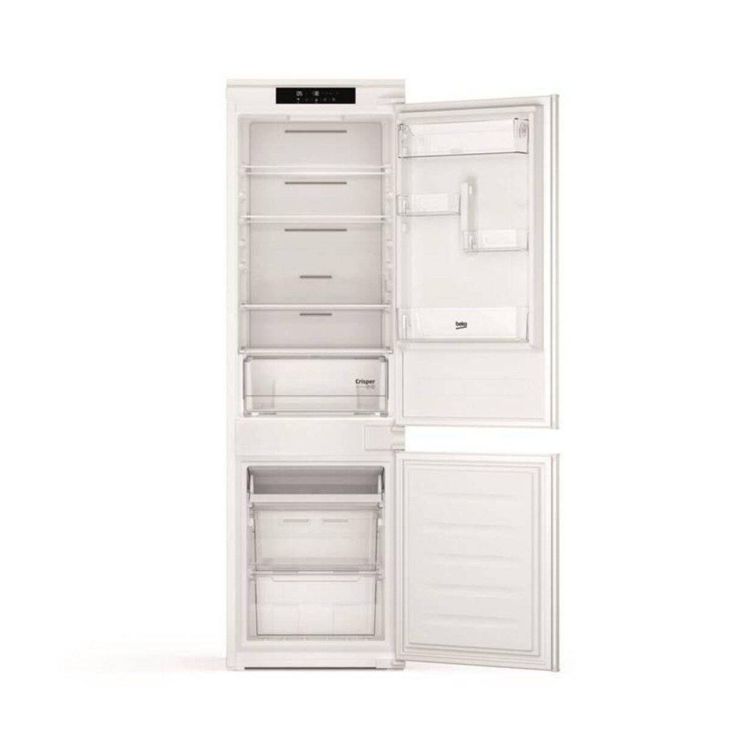 Dotaz na produkt Na splátky ještě dnesVestavná chladnička s mrazákem Beko B5BCNC256SW je ideální volbou pro moderní kuchyně, které vyžadují spolehlivé chlazení, dostatek prostoru a úsporný provoz. Chladicí část nabízí objem 182 litrů, zatímco mrazicí část ve spodní části poskytuje kapacitu 68 litrů. Díky promyšlenému vnitřnímu uspořádání s policemi z bezpečnostního skla a praktickými přihrádkami ve dveřích máte všechny potraviny vždy přehledně uspořádané.