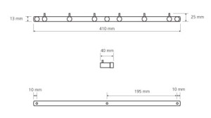 šířka 410 mmhloubka 40 mmvýška 25 mmmateriál mosazbarva chrominstalace na stěnumontáž vrtánímsada na vrtání je součástí baleníPARAMETRY:Barva: chromMateriál: mosazMontáž: vrtáníPočet háčků/ramen: pro...