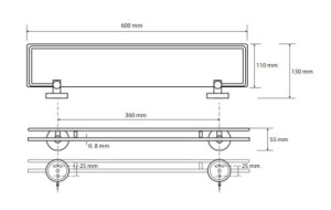 šířka 600 mmhloubka 130 mmvýška 55 mmmateriál mosaz, mléčné sklopovrchová úprava chrommontáž vrtánímPARAMETRY:Barva: chrom;ostatníDruh: police s ohrádkou (s okrajem)Materiál: kov;skloMontáž:...