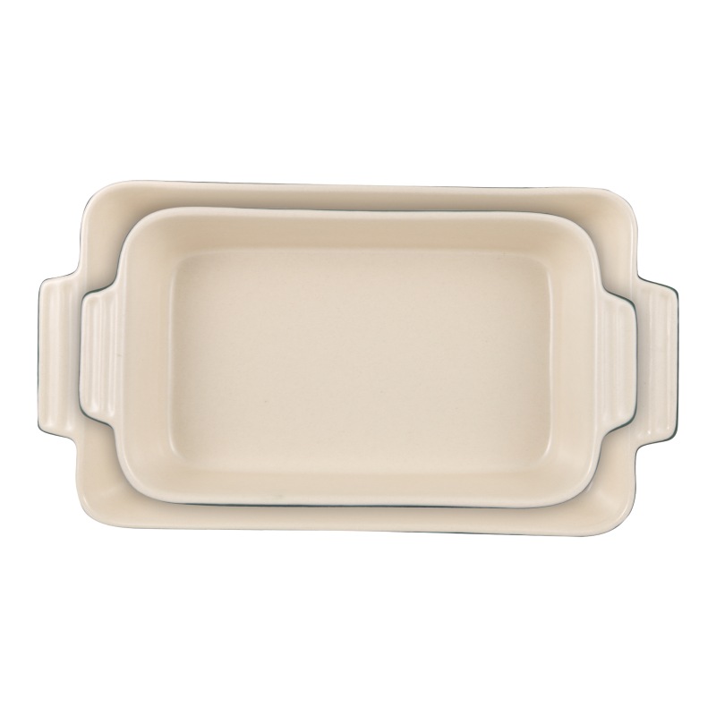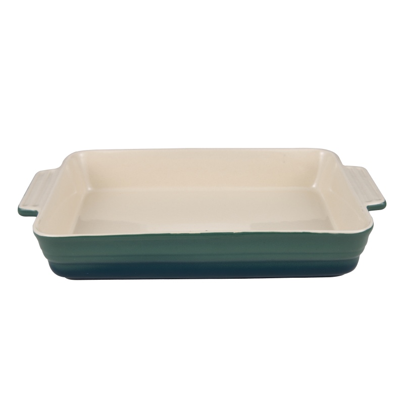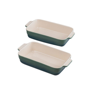 Dotaz na produkt• Sada 2 obdélníkových forem na pečení: 1 forma o rozměrech 31 x 19 x 5,2 cm a jedna forma o rozměrech 37 x 21 x 7 cm. • Vyrobeno z vysoce odolné kameniny. • Interiér v krémové barvě. • Exteriér v odstínech zelené. • Stohovatelný výrobek. • Vhodné do trouby, mikrovlnné trouby, lednice a myčky.Excalibur přináší do vaší kuchyně efektivní a sofistikované kuchyňské nádobí s barevným nádechem. Sada 2 obdélníkových pekařů o rozměrech 31 x 19 x 5,2 cm a 37 x 21 x 7 cm, stohovatelná sada, která vyřeší vaše problémy se skladováním. Jsou vyrobeny z vysoce kvalitní kameniny, jsou extrémně odolné a trvanlivé a udržují teplotu, aby nabídly produkt na stole v jeho optimálním bodě a zároveň šetří energii. Vařte v troubě, ohřívejte jídlo v mikrovlnné troubě nebo je uchovávejte v lednici, cokoli potřebujete. Kolekce připomínající staromódní kuchyni s přechodově zeleným designem, s interiérem v krémové barvě, který zdokonalí vaše přípravy a s uchy je můžete podávat, kde si budete přát. Kompletní sada, která se snadno čistí v myčce, takže je můžete použít tolikrát, kolikrát potřebujete.