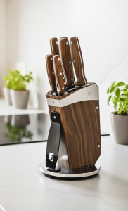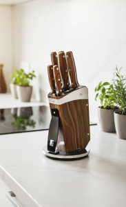 - Akrylový stojan 15,5 x 15,6 x 24 cm – Tento elegantní stojan nejen prakticky uchová vaše nože, ale také je promění v umělecký kousek na vaší kuchyňské lince. Akryl zajišťuje stabilitu a bezpečnost, zatímco imitace dřeva dodává rustikální nádech, který skvěle ladí s moderními i tradičními interiéry.