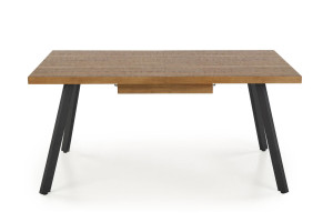 Dotaz na produkt Na splátky ještě dnesrozměry: 150÷220/85/76 cm, rozkládací stůl, materiál: laminovaná MDF / práškově lakovaná ocel, barva: deska - ořech med, nohy - černá POZNÁMKA: po vylití tekutin na desku stolu ji otřete okamžitě vysušte, aby materiál pracovní desky nenasákl vodu.
