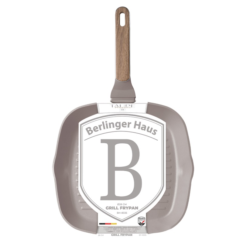 Dotaz na produktTechnické parametry:• Materiál: kovaný hliník s nepřilnavým povrchem TitanPro• Grilovací pánev s titanovým povrchem pr. 28*4,1 cm 2,1 l• Barva: matná taupe, design dřevaREGISTROVANÝ DESIGN BERLINGERHAUS!Vlastnosti:• 3vrstvý odolný nepřilnavý povlak TitanPro• Ergonomická rukojeť s měkčeným povrchem, stříbrnou vložkou a barvou světlého dřeva, která zůstává chladná• Minimalistický styl• Matný povrch• Turbo indukční dno systém• Vhodné pro všechny typy varných desek• Ekologicky šetrné bez PFOA, olova a kadmia• Snadno se čistí