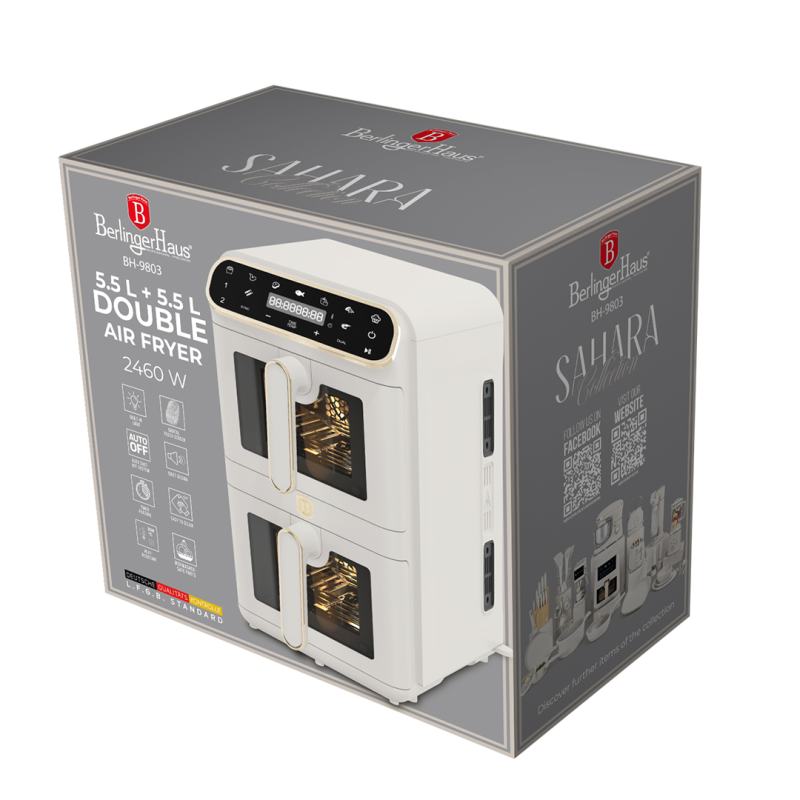 Dotaz na produkt Na splátky ještě dnesTechnické parametry:• Napájení: 220–240 V ~ 50–60 Hz 2460 W• Regulace teploty: 60–200 °C• VELIKOST XXXL: Objem: 11 l = 5,5 l + 5,5 l• Nepřilnavá miska na olej a košík na potraviny – vhodné do myčky nádobí• DIGITÁLNÍ• Barva: matná krémováVlastnosti:• Funkce rychlého ohřevu• Ochrana proti přehřátí• Funkce automatického vypnutí po vyjmutí koše• LED displej s dotykovou obrazovkou• Systém menu vaření s tlačítky pro každý druh jídla (9 druhů)• Viditelná okénka• Časovač až 60 minut• Zdravý způsob vaření bez oleje a tuku• Až o 80 % méně tuku