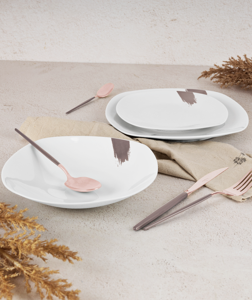 Stylová jídelní sada, která v sobě spojuje eleganci, kvalitní zpracování a jemné přírodní tóny. Ideální pro každodenní i sváteční stolování.