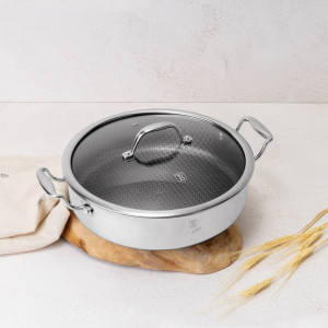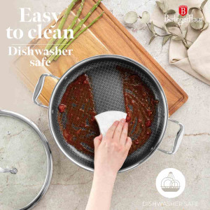 Nerezová konstrukce zajišťuje vysokou odolnost a dlouhou životnost, zatímco nepřilnavý povrch usnadňuje vaření i následné čištění. Díky rovnoměrnému rozložení tepla dosáhnete perfektních výsledků při přípravě omáček, dušení i vaření masa. Skleněná poklice s otvorem pro únik páry umožňuje pohodlnou kontrolu průběhu vaření.