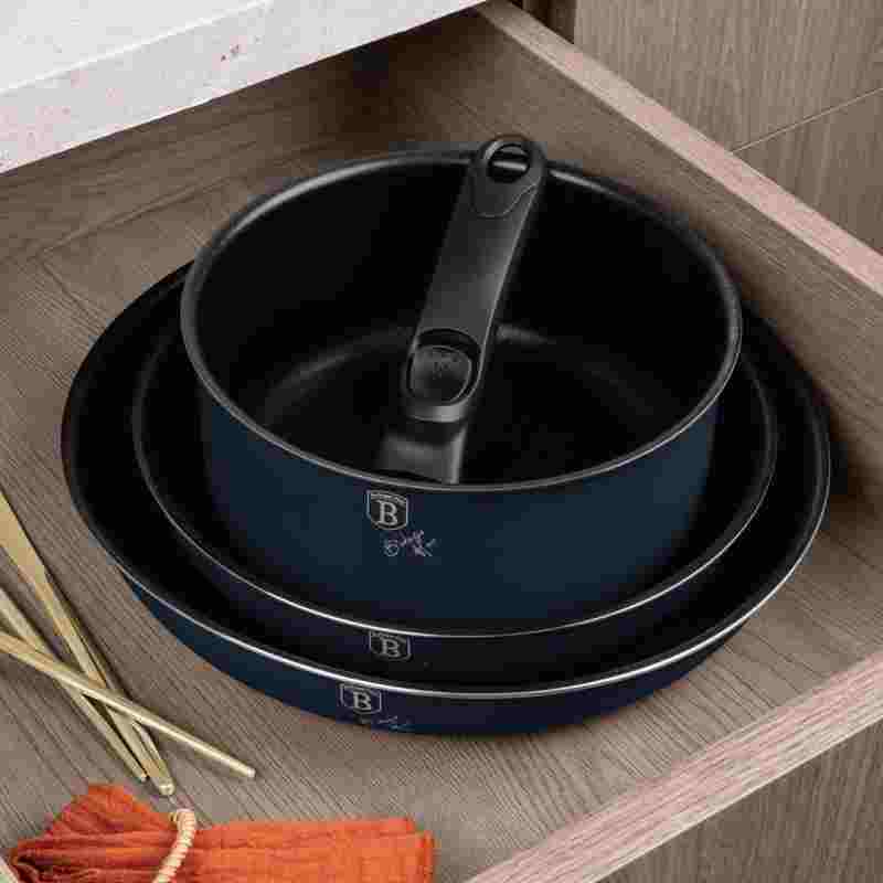 Objevte sadu nádobí Berlinger Haus, která kombinuje praktičnost, styl a moderní technologie. S touto sadou zvládnete jakékoli vaření – od smažení a dušení po pečení. Díky stohovatelnému designu ušetříte místo v kuchyni a chytré poklice vám usnadní manipulaci při vaření. Ergonomické rukojeti Click It a měkké knoflíky Stay Cool zajišťují pohodlnou a bezpečnou práci bez popálení.