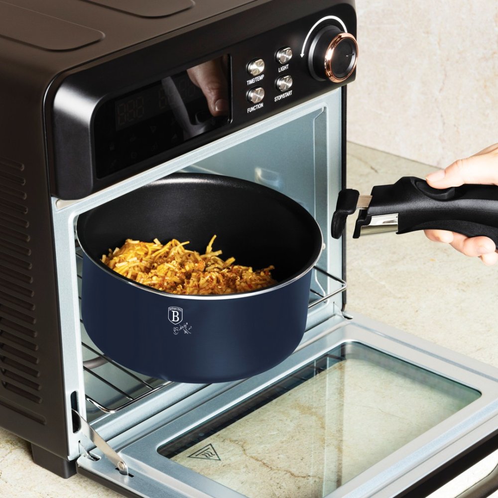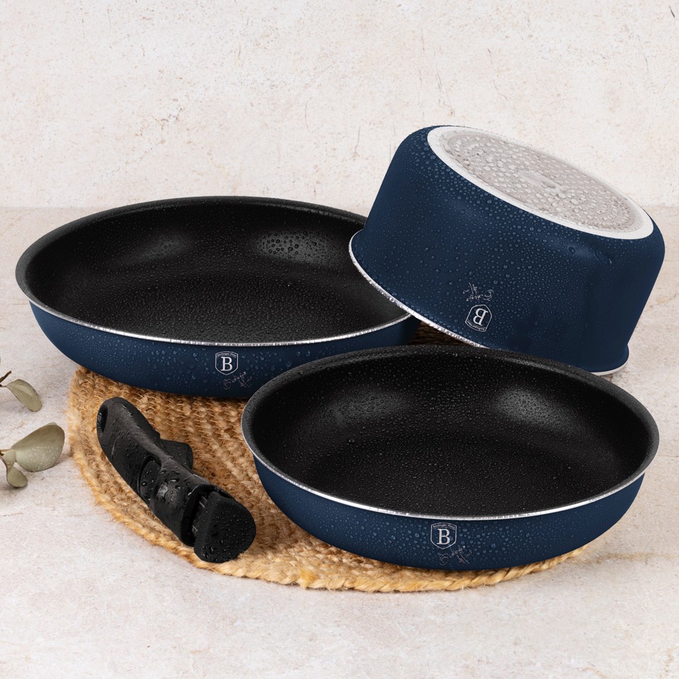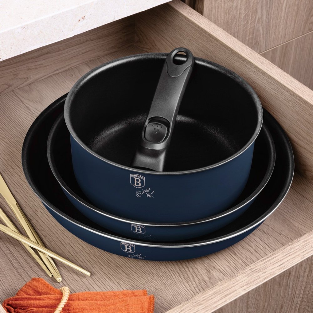 Objevte sadu nádobí Berlinger Haus, která kombinuje praktičnost, styl a moderní technologie. S touto sadou zvládnete jakékoli vaření – od smažení a dušení po pečení. Díky stohovatelnému designu ušetříte místo v kuchyni a chytrá víka Click It usnadňují manipulaci při vaření. Ergonomické rukojeti a měkké knoflíky Stay Cool zajišťují pohodlnou a bezpečnou práci bez popálení.