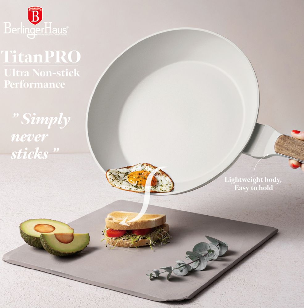 • Kovaný hliník s nepřilnavým povrchem TitanPro (3× odolnější než běžné povrchy)