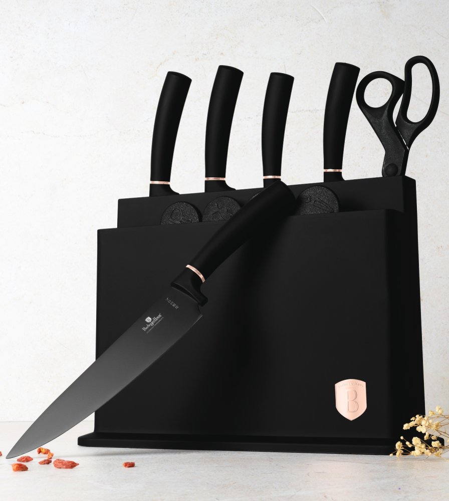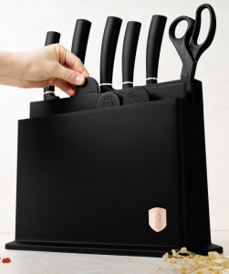 - designový stojan na nože i prkénka z kolekce Black Rose
