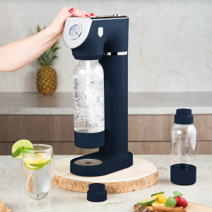 Dotaz na produkt Na splátky ještě dnesModerní výrobník sody na domácí perlivou vodu z kolekce Deep Sea Collection umožňuje připravit čerstvou sodu během několika sekund přímo u vás doma. Nabízí vestavěný barometr pro nastavení intenzity perlivosti, praktické 2 lahve o objemu 1,0 l a 0,5 l a kompatibilitu se všemi standardními CO2 bombičkami. Přístroj je zcela mechanický – nevyžaduje elektřinu ani baterie, takže jej můžete používat kdekoliv. Stylové matně modré provedení dodává kuchyni moderní design.