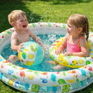 Nafukovací bazén s barevnou grafikou poskytne spoustu zábavy všem amatérským vodním šílencům.
