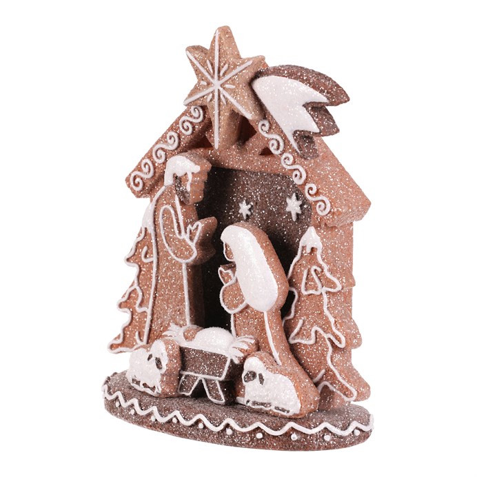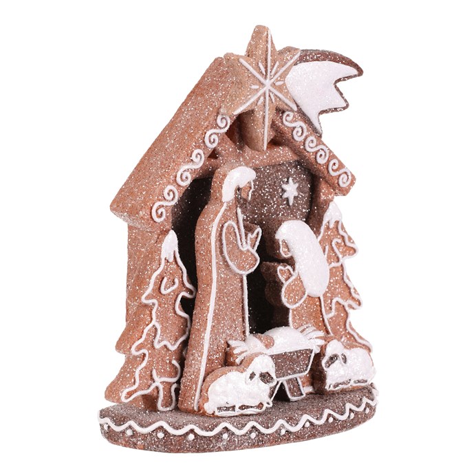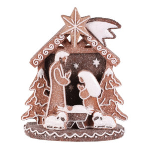 Dotaz na produktPerníkový betlém z polyresinu v hnědé barvě s bílým zdobením, který je vybaven LED osvětlením, vytváří neodolatelný světelný efekt, který okouzlí každého. Svým provedením přinese do vaší vánoční výzdoby hřejivou atmosféru, plnou klidu a pohody.