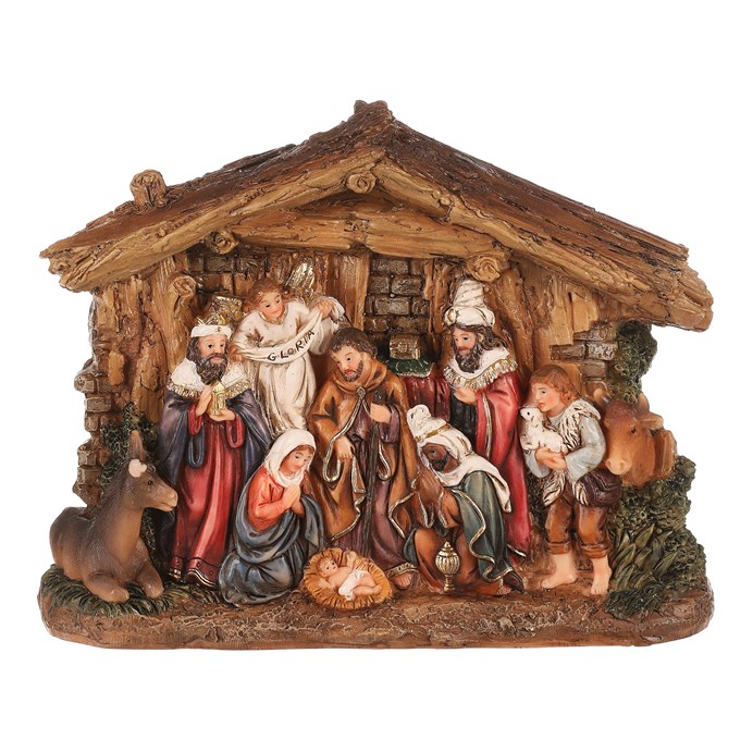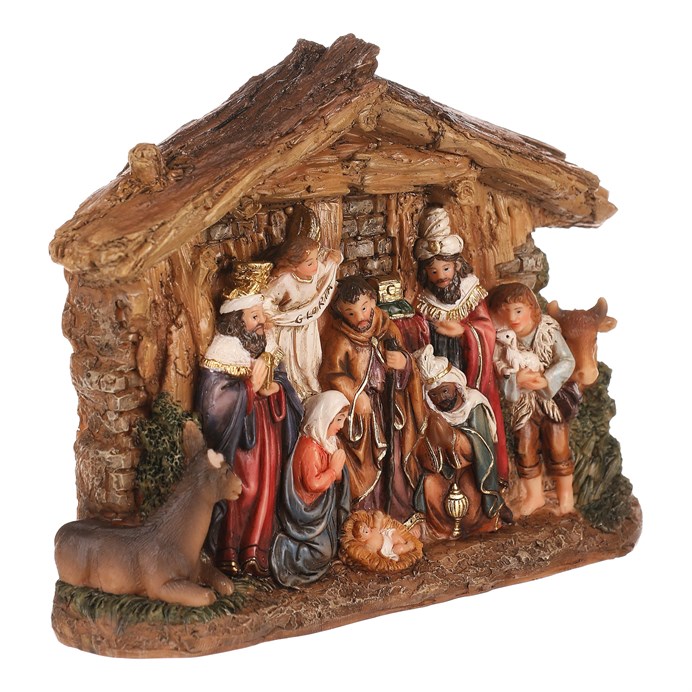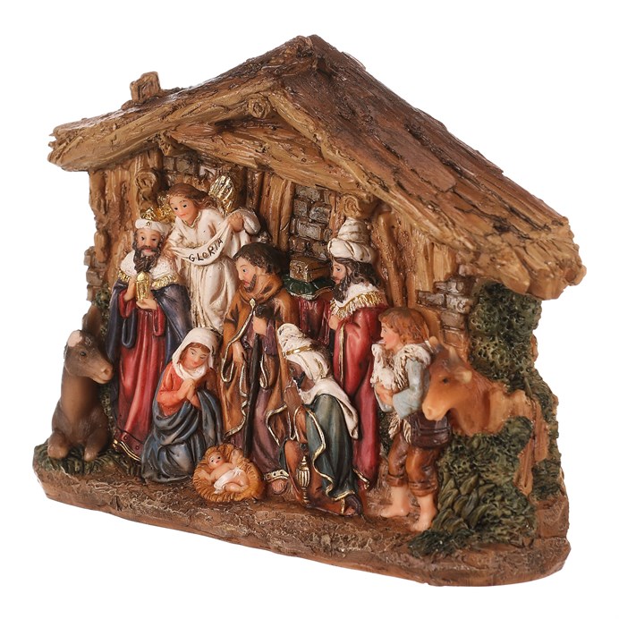 Dotaz na produktDekorace na postavení v podobě betlému v krásných sytých barvách, představuje symbolický výjev s narozeným Ježíškem. Obsahuje klíčové prvky, včetně betlémské hvězdy, anděla, tří králů s dary, Panny Marie a domácích zvířat. Umístěte tuto typickou vánoční ozdobu na vhodné místo ve vašem interiéru a nechte ji rozšířit poselství Vánoc a symboliku narození Ježíška. Betlém se stane nejen krásnou dekorací, ale také připomínkou významu tohoto svátečního období.