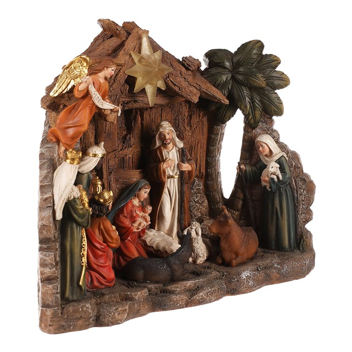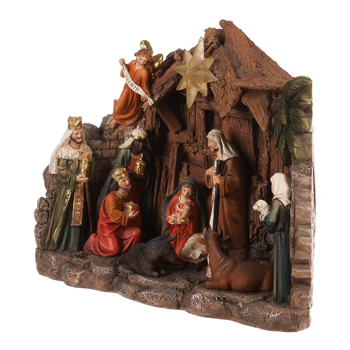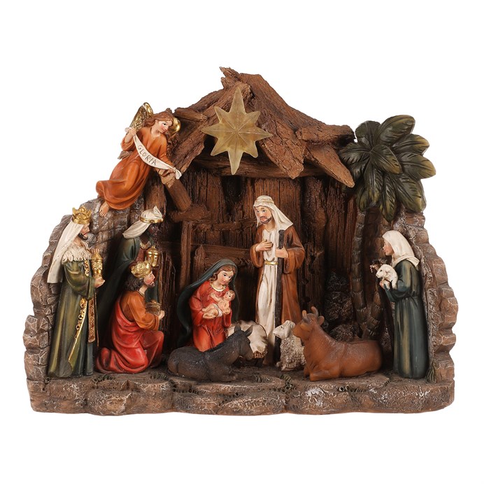 Dotaz na produktDekorace s LED osvětlením na postavení z polyresinu, v podobě betlému v krásných sytých barvách, představuje symbolický výjev s narozeným Ježíškem. Obsahuje všechny jeho klíčové prvky, včetně betlémské hvězdy, anděla, tří králů s dary, Panny Marie a domácích zvířat. Umístěte tuto typickou vánoční ozdobu na vhodné místo ve vašem interiéru a nechte ji rozšířit poselství Vánoc a symboliku narození Ježíška. Betlém se stane nejen krásnou dekorací, ale také připomínkou významu tohoto svátečního období.