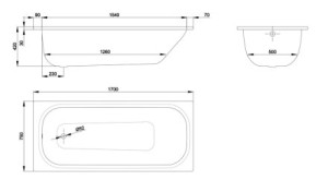 délka 170 cmšířka 75 cmhloubka 42 cmmateriál glazovaná titanová ocel (odolná proti poškrábání a běžnému opotřebení)glazovaný povrch tvoří ochranu proti špíně a nečistotám (udržuje vanu zářivě...