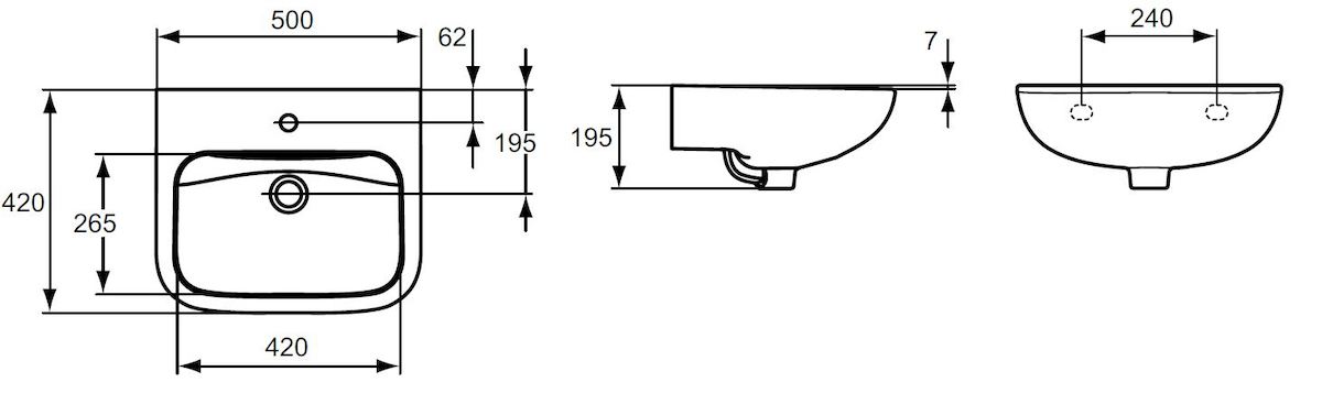 Bezbariérové umyvadlo Ideal Standard Contour 21 50x42 cm otvor pro baterii uprostřed S241201