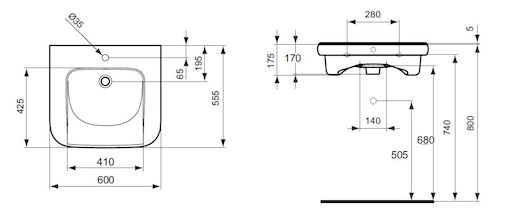 Bezbariérové umyvadlo Ideal Standard Contour 21 60x55,5 cm otvor pro baterii uprostřed S238901