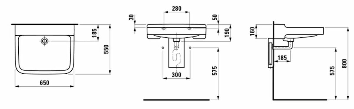Bezbariérové umyvadlo Laufen Pro 65x55 cm bez otvoru pro baterii H8119530001091