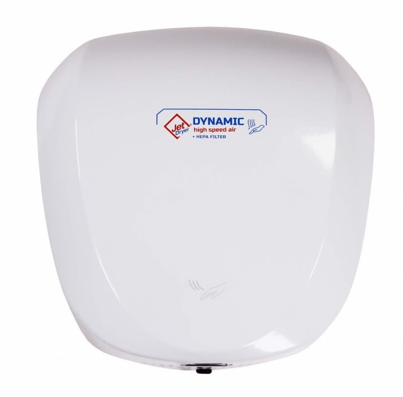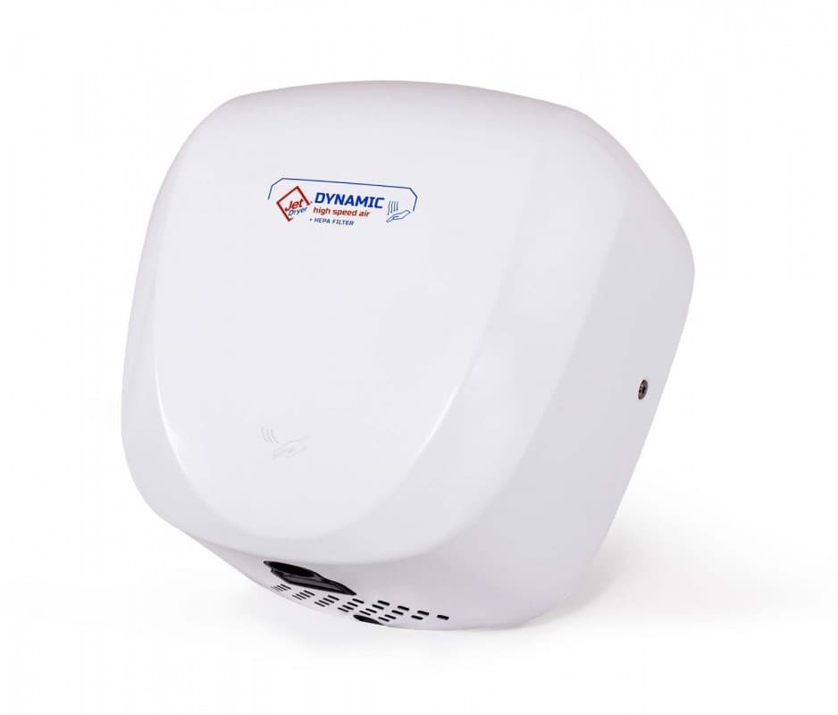 Jet Dryer DYNAMIC je jediný horkovzdušný vysoušeč na trhu vybavený HEPA filtrem. Díky tomu je vzduch vyfukovaný na ruce vždy maximálně hygienický a nezávadný. HEPA filtr zachytí až 99,97% bakterii virů a dalších drobných částic. Osoušeč je naprosto bezkontaktní, aktivuje se automaticky po vložení rukou pod přístroj. Zaoblený design krytu umožňuje snadné čištění.