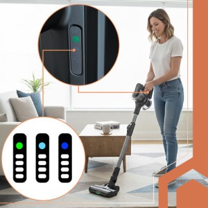 Jasný LED indikátor - víte, kdy změnit režim a kdy nabít baterii. Vysavač vám automaticky sdělí, v jakém režimu se nacházíte a kolik energie zbývá. Barvy jsou jasné a intuitivní: zelená, modrá a tmavě modrá. Žádné dohady, úplná kontrola.