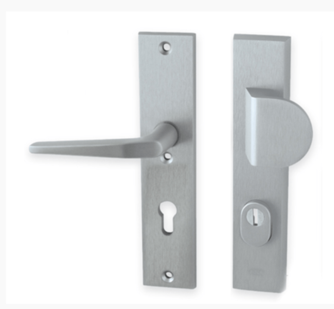Dotaz na produkt Na splátky ještě dnesBezpečnostní štítové kování s překrytím vložky FAb. Materiál hliník, povrch inox elox