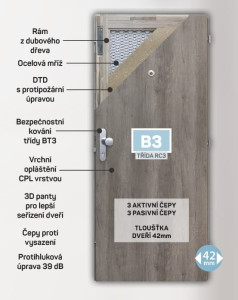 Dotaz na produkt Na splátky ještě dnesVchodové bezpečnostní dveře jsou vyráběny z kvalitního materiálu a jsou podrobovány důkladné výstupní kontrole. Dveře mají protihlukový útlum 39 dB. Všechny dveře jsou certifikovány v českých akreditovaných zkušebnách.