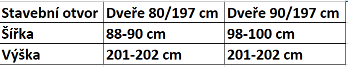 Specifikace dveří: