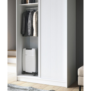 Dotaz na produkt Na splátky ještě dnesPosuvná šatní skříň Biancco je praktické a stylové úložné řešení, které se dokonale hodí do vašeho interiéru. Má rozměry 120 cm na šířku, 220 cm na výšku a 60 cm na hloubku, což poskytuje dostatek prostoru pro uspořádání vašich věcí. Korpus skříně je vyroben z odolné 16 mm silné MDF desky a její ABS hrany navíc chrání před mechanickým poškozením, což zajišťuje estetický vzhled. Skříň je v elegantní bílé barvě, která dodává místnosti pocit jasu a svěžesti. Bez zrcadla ve dveřích působí skříň minimalisticky a moderně a dobře se hodí do různých stylů interiéru. Uvnitř skříně je šest robustních polic, z nichž každá unese zatížení až 10 kg. Toto je ideální místo pro uložení oblečení, doplňků a dalších drobných předmětů, které chcete mít po ruce. Nohy skříně jsou vyrobeny z vysoce kvalitního plastu, mají výšku 0,5 cm a jsou vybaveny bílými kluzáky. To usnadňuje přemisťování skříně a nezanechává žádné stopy na podlaze. Součástí dodávky jsou tyče, které umožňují zavěšení oblečení na ramínka, což dále zvyšuje funkčnost šatní skříně a usnadňuje její organizaci. Posuvná šatní skříň Biancco je praktické a estetické úložné řešení, které ve vašem interiéru vytvoří pořádek a poskytne potřebný prostor pro různé předměty. Díky své pevné konstrukci a funkčnosti vás bude doprovázet po mnoho let a bude sloužit jako spolehlivý úložný prostor.Látky: Bílá rohož