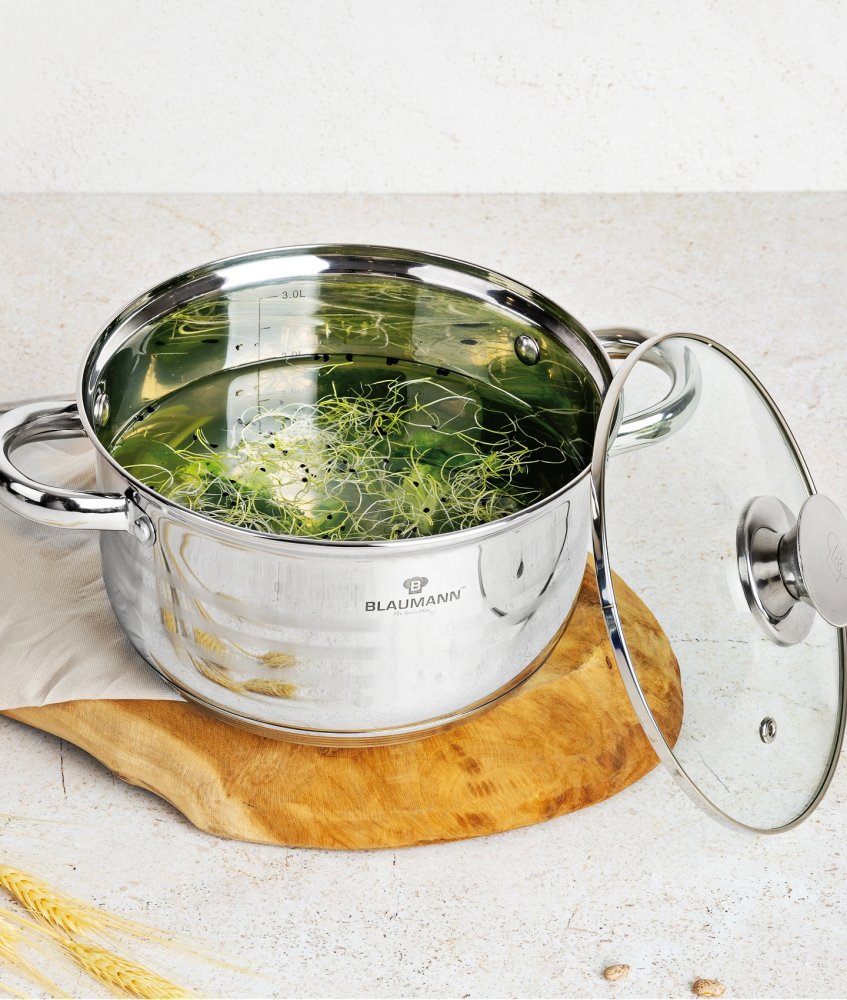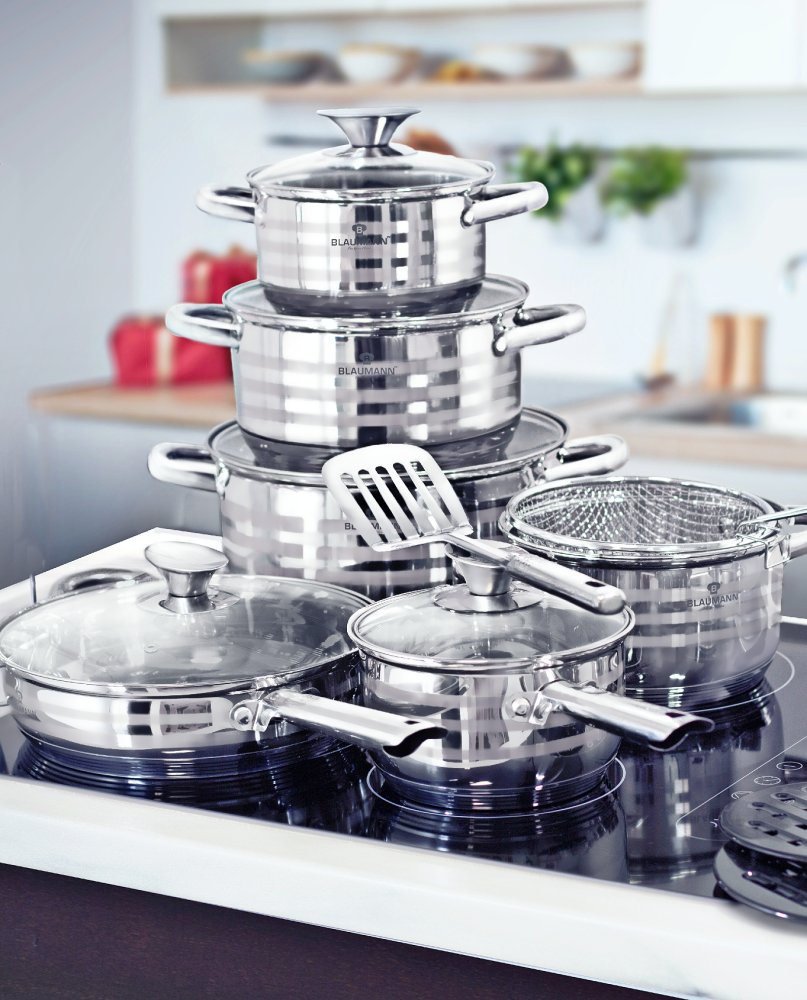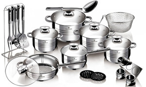 Dotaz na produkt Na splátky ještě dnes- materiál: nerezová ocel - obsahuje: kastrol s poklicí 24 x 14,5 cm, 20 x 12,5 cm, 18 x 11,5 cm, 16 x 10,5 cm - rendlík s poklicí 16 x 10,5 cm - pánev s poklicí 24 x 6,5 cm - sada kuchyňského náčiní 7 ks se stojanem - sada kořenek 3 ks na magnetickém tácku- 2 ks podložek pod horké hrnce- fritovací košík s odnímatelnou rukojetí - 5ti vrstvé dno - nýtované rukojeti pro bezpečné používání - vhodné na všechny typy sporáků včetně indukčních - vhodné do myček - odměrná stupnice - nerezové rukojeti a úchyty