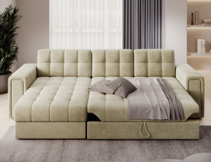 Dotaz na produkt Na splátky ještě dnesRohová pohovka Blenvi je moderní a všestranný kus nábytku, ideální do obývacího pokoje. Je vybavena sedákem s vlnitými pružinami typu B a vysoce kvalitní polyuretanovou pěnou T2540, které zajišťují vynikající pohodlí. Díky funkci spaní typu Dolphin se snadno promění v pohodlnou postel. Navíc obsahuje úložný prostor na ložní prádlo, což poskytuje další funkčnost. Plně čalouněná opěradla umožňují umístění kdekoli v místnosti. Jeho stylový, moderní design z něj činí perfektní volbu pro různé styly interiérů.Látky: Monolith 04