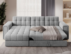 Dotaz na produkt Na splátky ještě dnesRohová pohovka Blenvi je moderní a všestranný kus nábytku, ideální do obývacího pokoje. Je vybavena sedákem s vlnitými pružinami typu B a vysoce kvalitní polyuretanovou pěnou T2540, které zajišťují vynikající pohodlí. Díky funkci spaní typu Dolphin se snadno promění v pohodlnou postel. Navíc obsahuje úložný prostor na ložní prádlo, což poskytuje další funkčnost. Plně čalouněná opěradla umožňují umístění kdekoli v místnosti. Jeho stylový, moderní design z něj činí perfektní volbu pro různé styly interiérů.Látky: Monolith 84