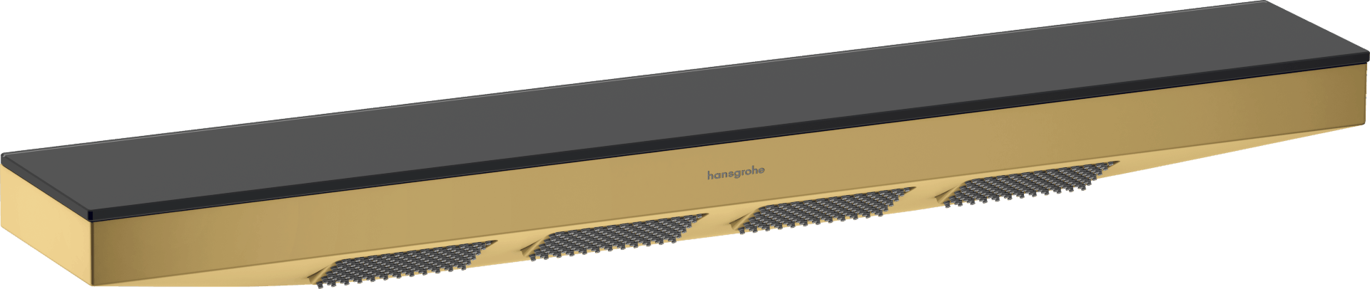 Prémiová kovová sprcha a její exkluzivní kombinace broušeného zlatého povrchu s policí z bezpečnostního skla v barvě grafitu přináší do koupelny ještě větší pohodu. Ve spojení s dalšími výrobky z řady Rainfinity si milovníci designu mohou vytvořit své vlastní soukromé wellness.