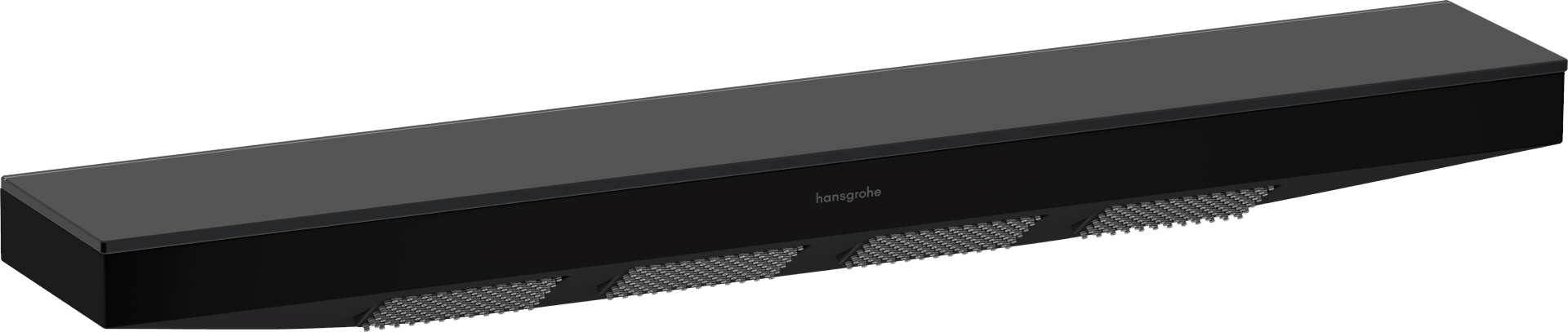 Tato prvotřídní sprcha je vyrobena z kovu a výrazná kombinace matně černé povrchové úpravy a poličky z bezpečnostního skla v grafitové barvě přináší do koupelny jednotný vzhled. Ve spojení s dalšími výrobky z řady Rainfinity si milovníci designu mohou vytvořit své vlastní soukromé wellness.