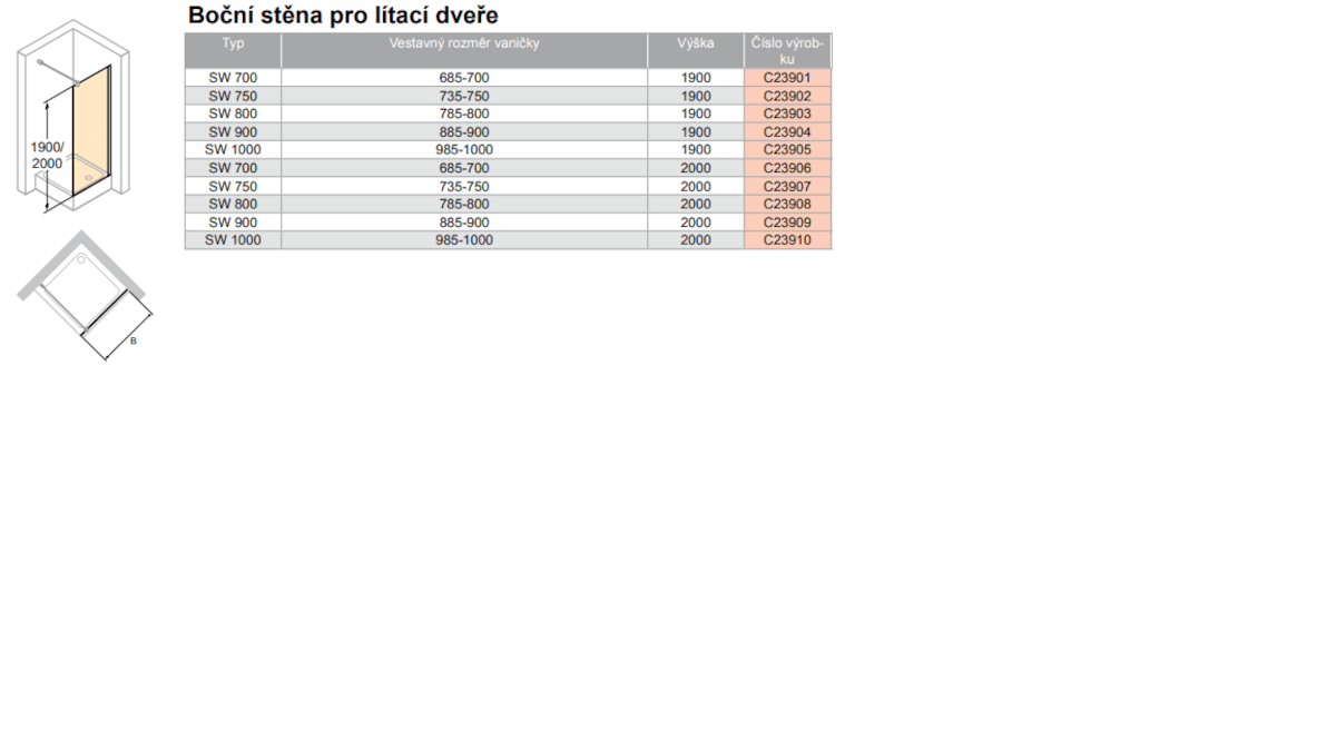 Druh výrobku: boční zástěna ke sprchovým dveřím