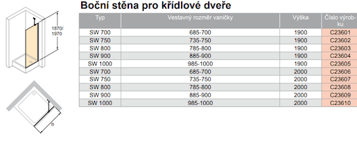 Druh výrobku: boční zástěna ke sprchovým dveřím