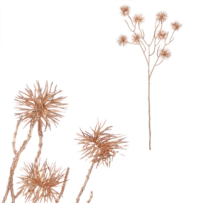Dotaz na produktUmělá větev bodláku ve zlaté barvě je elegantním doplňkem pro vánoční, případně i celoroční výzdobu. Její detailně propracované květy a stonek dodají dekoracím jemný lesk a působivý kontrast k zeleným či barevným prvkům. Skvěle se hodí do svátečních výzdob i moderních interiérových aranží.
