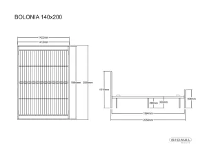 Rozměry postele: A - 206, B - 142, C - 140x200, D - 28, E - 3, F - 5, G - 51, H - 102 cm.