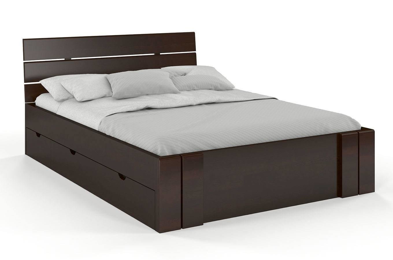 Dřevěná, borovicová postel do ložnice Visby ARHUS High Drawers je ceněným a stylovým nábytkem, který změní každou ložnici a navíc poskytne pohodlný a dokonalý odpočinek. Stabilita a solidní zpracování navíc zdůrazňují jeho přednosti.