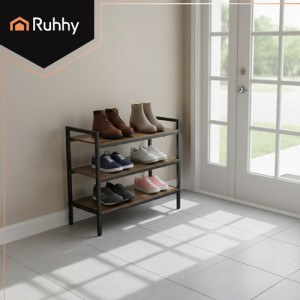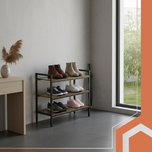 Dotaz na produktBotník Ruhhy v sobě spojuje funkčnost, odolnost a eleganci v loftovém stylu . Tři robustní police pojmou obuv a doplňky celé rodiny a kompaktní design se perfektně hodí i do malé chodby. Robustní ocelový rám a teplé hnědé police vytvářejí duo, které do interiéru vnáší nádech elegance. pořádek, pohodlí a nadčasový charakter.