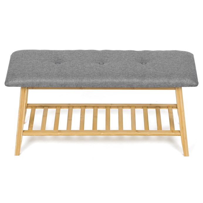 Dotaz na produkt Na splátky ještě dnesBotník a taburet DR-N1012 GREY2 značky Autronic kombinuje praktickou funkci se stylovým designem vhodným do moderních interiérů. Konstrukce je vyrobena z masivního bambusu v přírodním odstínu, který zajišťuje vysokou pevnost a odolnost proti opotřebení, zároveň přináší přírodní estetiku a ekologický rozměr. Sedák je čalouněný šedou látkou s jemnou strukturou a decentním prošitím, které zvyšuje komfort při sezení a zároveň dodává výrobku elegantní vzhled. Pod sedákem je umístěna otevřená police tvořená bambusovými lamelami, která nabízí praktický prostor pro uložení obuvi nebo dalších předmětů, čímž přispívá k lepší organizaci prostoru. Stabilní konstrukce s mírně šikmými nohami zajišťuje pevnost a bezpečnost při používání, zatímco přírodní povrchová úprava bambusu chrání materiál a usnadňuje údržbu. Botník je vhodný do předsíní, chodeb či ložnic, kde oceníte kombinaci funkčnosti a přírodního designu.