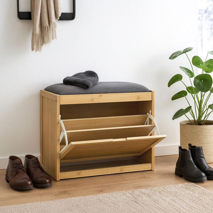 Dotaz na produkt Na splátky ještě dnesBotník DR-N1014 GREY2 značky Autronic kombinuje přírodní estetiku masivního bambusu s praktickým úložným prostorem a komfortním sedákem potaženým šedou látkou. Konstrukce je vyrobena z pevného a odolného bambusového masivu, který díky své přirozené struktuře a světlému odstínu dodává interiéru svěží a ekologický vzhled. Horní část botníku je opatřena měkkým polstrováním z kvalitní šedé textilie, která zajišťuje pohodlné sezení při obouvání. Úložný prostor je přístupný pomocí výklopného víka s praktickým výřezem pro snadné otevírání, což umožňuje efektivní uskladnění obuvi nebo dalších drobných předmětů. Stabilní rámová konstrukce z bambusu garantuje dlouhou životnost a pevnost, zatímco kompaktní rozměry botníku umožňují jeho umístění v předsíních i menších prostorách. Díky kombinaci přírodních materiálů a funkčních vlastností představuje tento botník ideální řešení pro organizaci domácnosti s důrazem na design i praktičnost.
